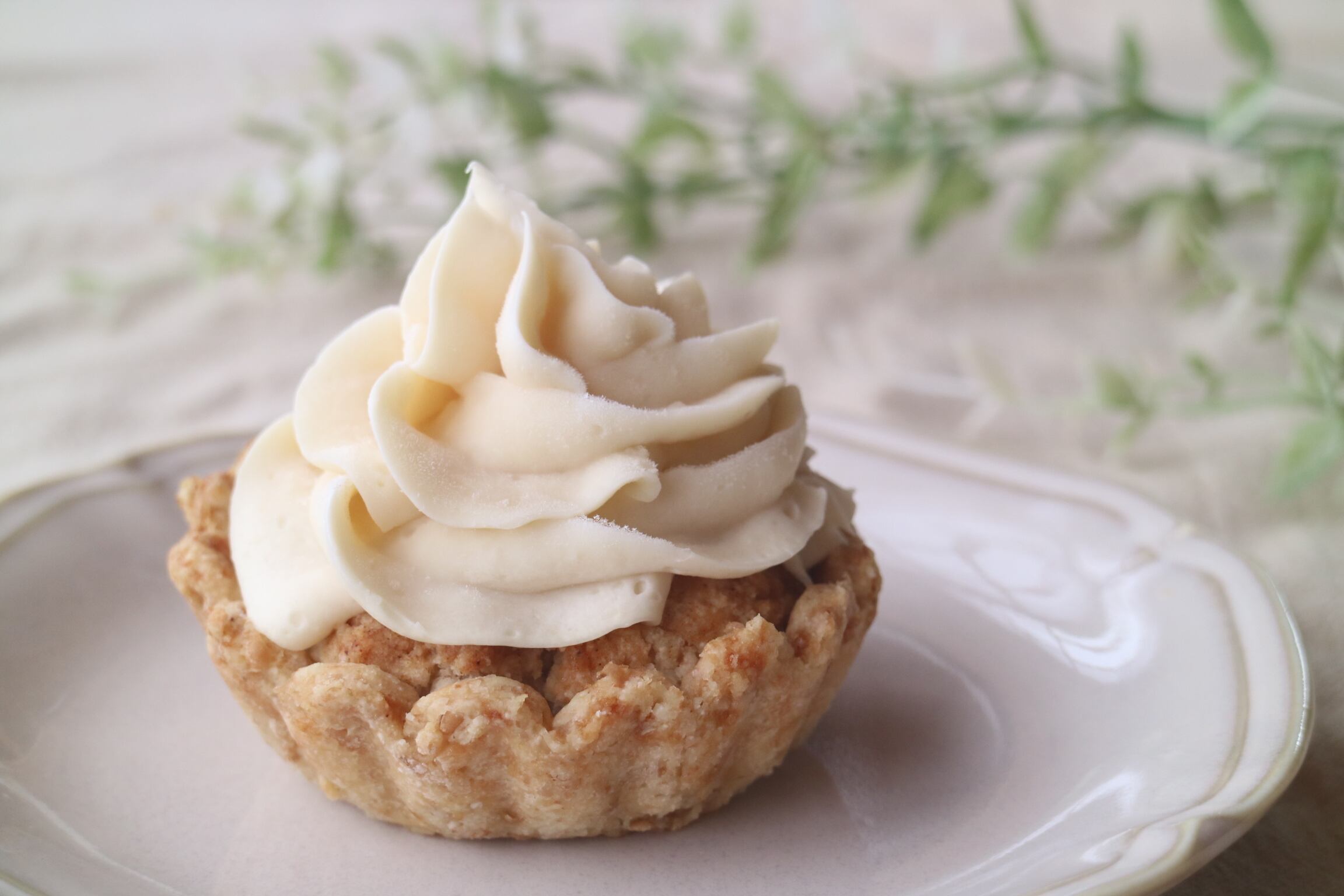 自家製豆乳ヨーグルトを使用したヴィーガンクリームチーズが乗ったリッチなお味のミニタルトです。
